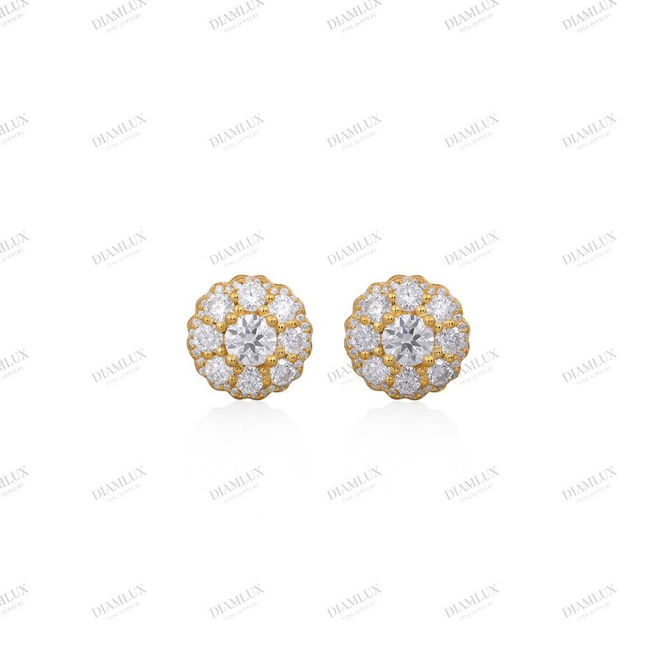 Yellow Gold Flora Round Cut Diamond Solitaire Stud Earrings for Women-Wedding & Anniversary Gift Jewelry