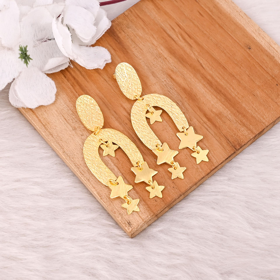 Yellow Gold Plated Brass Handmade Star Designer Dangler Stud Earring Wholesale Lot 25 Pairs Gift For Her Statement Earring