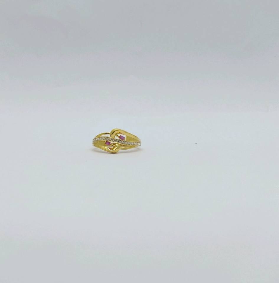Yellow Gold Ribbon Motif Ring with Brilliant Diamond Pave and Pink Gemstone Accents Sophisticated Swirl Design Jewelry for Women