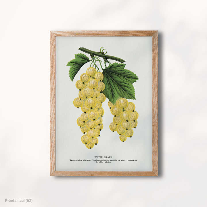Yellow Grape Modern Botanical Wall Art Canvas Print with Wood Frame Fruit Plant Illustration Home Decor