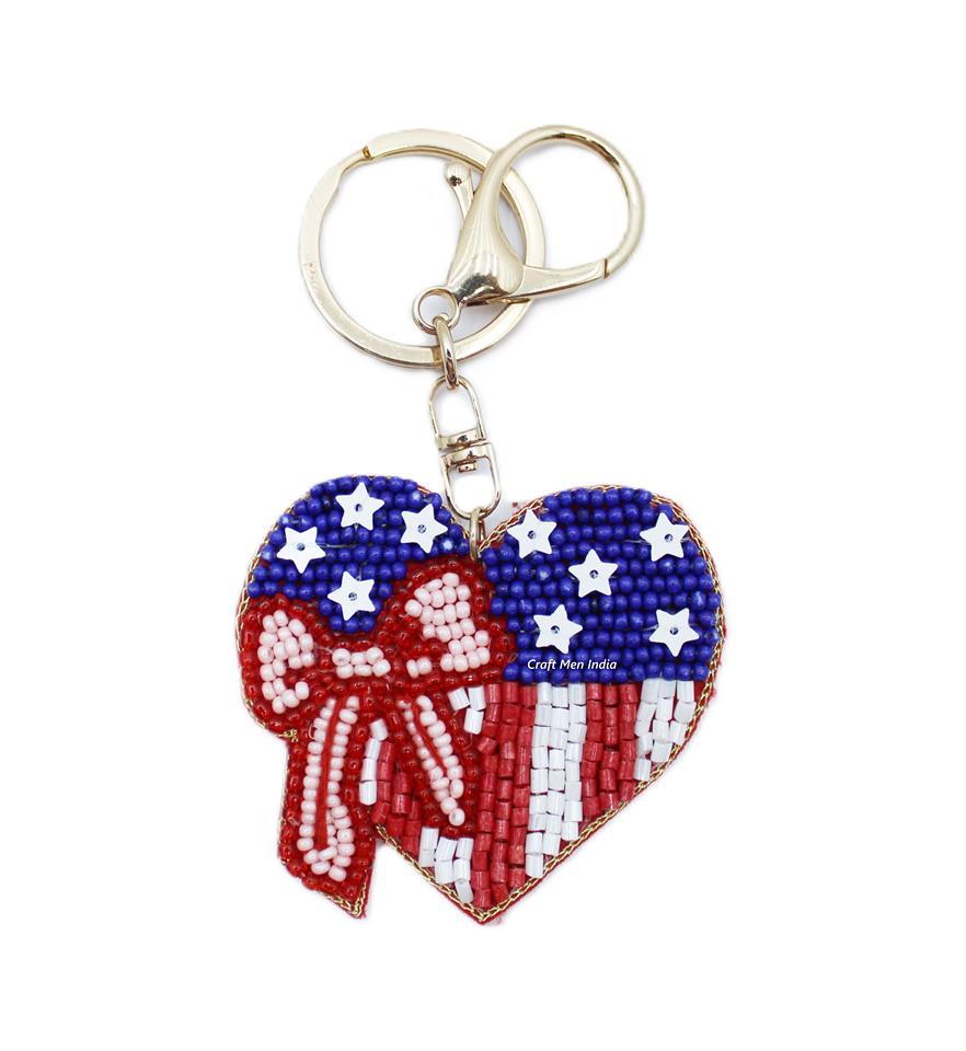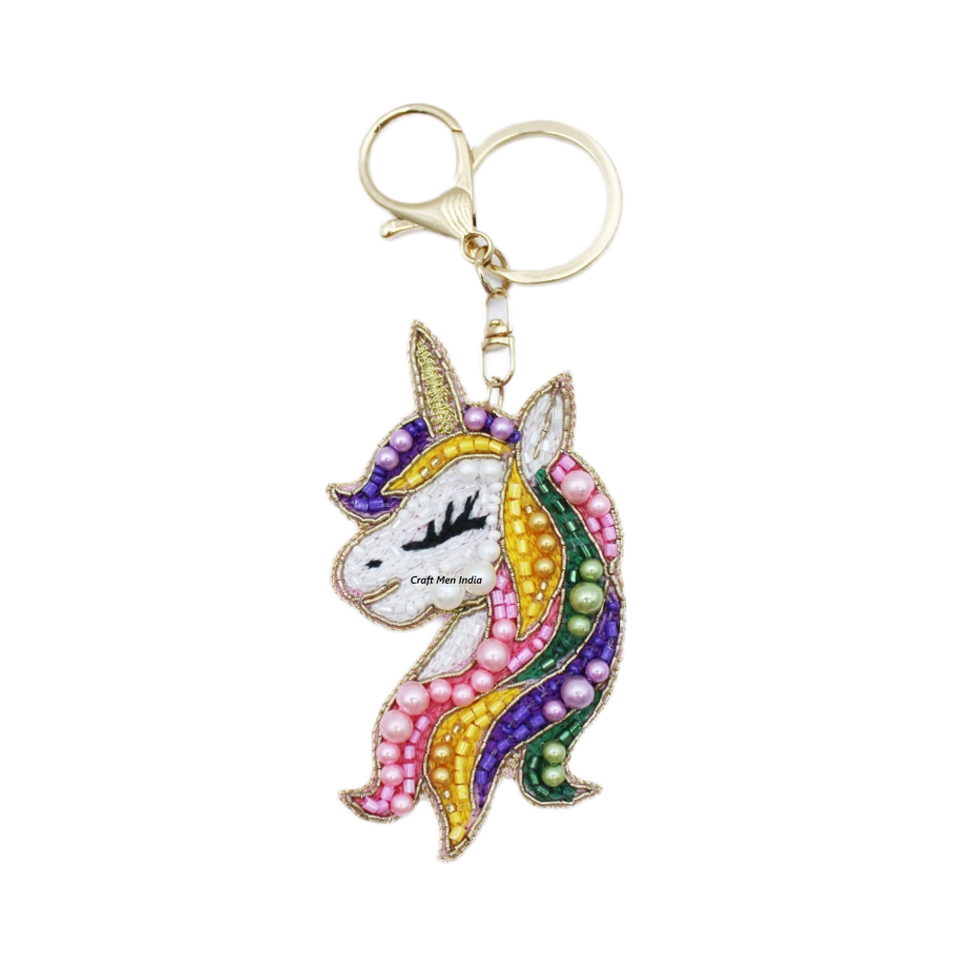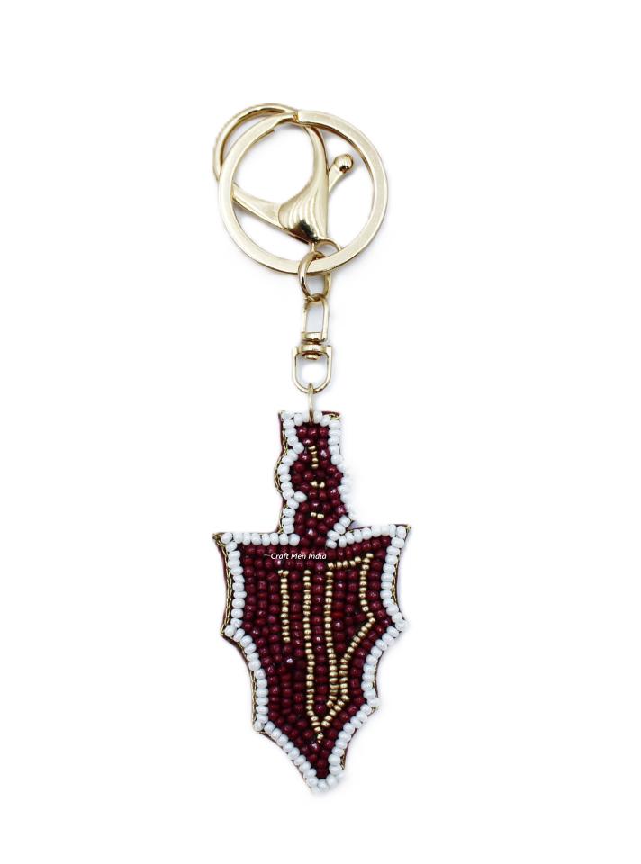 Yellow Green Iron Beaded Handmade Embroidery Keychain Bag Charms with Flower Design Durable Polished Finish