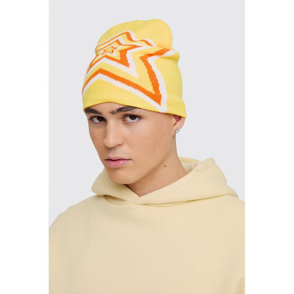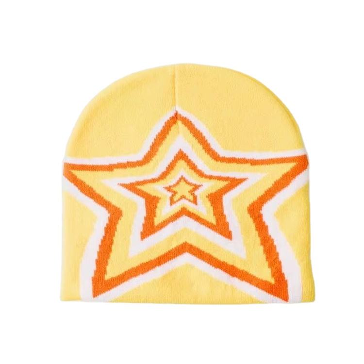 Yellow Jacquard Knit Beanie Animal Pattern Warm Acrylic Unisex Winter Hat Streetwear Style 3D Embroidery Y2K Customized Hat