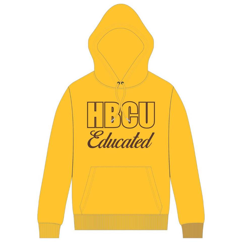 Yellow Men HBCU Educated Pullover Hoodie Brown Chenille and Embroidered Design Greek Life Apparel Custom College Clothing