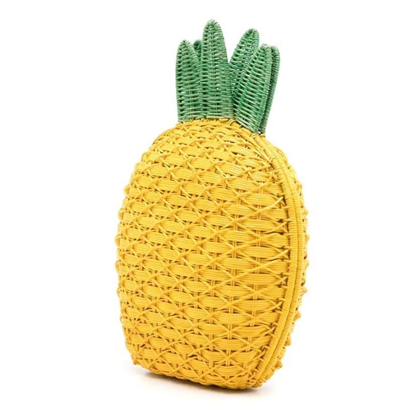 Yellow Pineapple Kids Summer Beach Going Travel Picnic Rattan Bags for Children Creative Design Unique Hand Braided Baby Bag