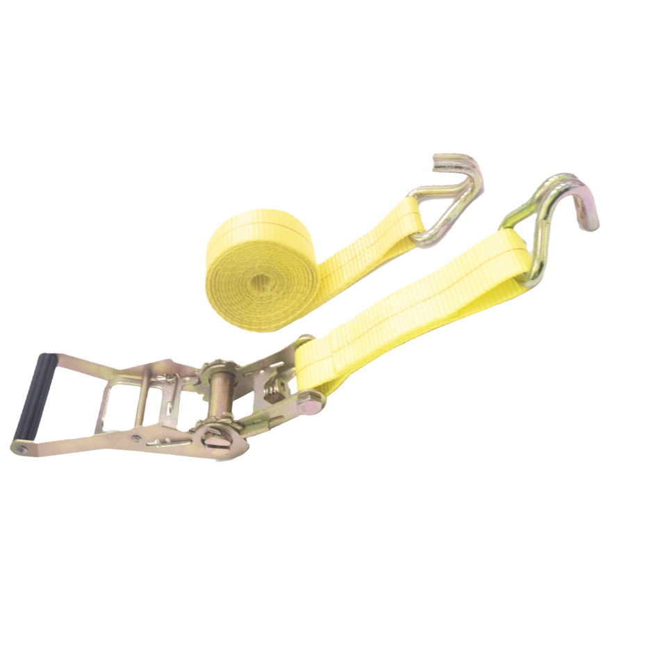 Yellow Polyester Belt Ratchet Strap With Hook, Customizable With Size Options 25/38/50mm
