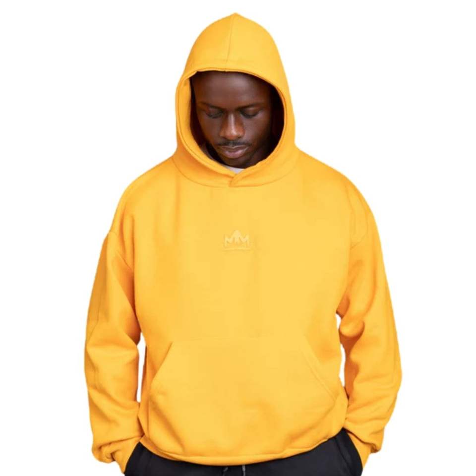 Yellow Pullover Hoodie for Men Heavyweight Cotton Fleece Kangaroo Pocket Hooded Sweatshirt Casual Streetwear