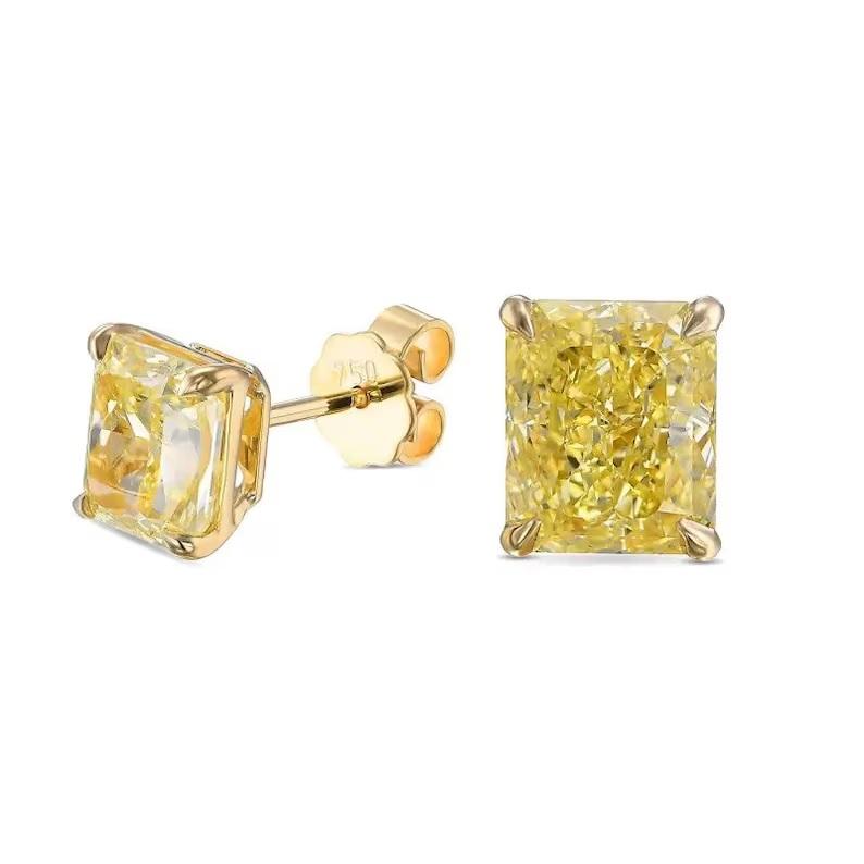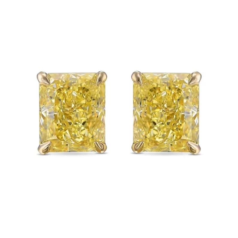 Yellow Radiant Cut Lab Grown Diamond Solitaire Studs Diamond Earring 14K Yellow Gold Lab Diamond Screw Back Earrings