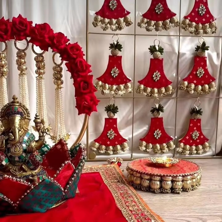 Yellow/Red/Pink Kundan Danglers for Haldi Mehndi Sangeet and Event Night Backdrop Decor,Small Hanging Multipurpose Decoration
