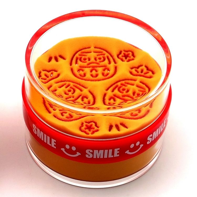 Yellow Red Sand Paperweight 2.5- Inch Round Flip Over to See Daruma Japanese Sand Pattern Souvenir Gift
