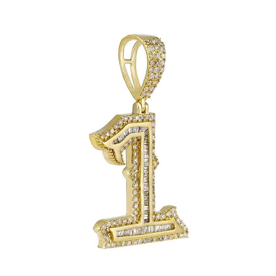 Yellow/Rose Gold Plated Number One Initial Pendant Hip Hop Small Size Cubic Zircon Diamond Pendant Anniversary Gift for Husband