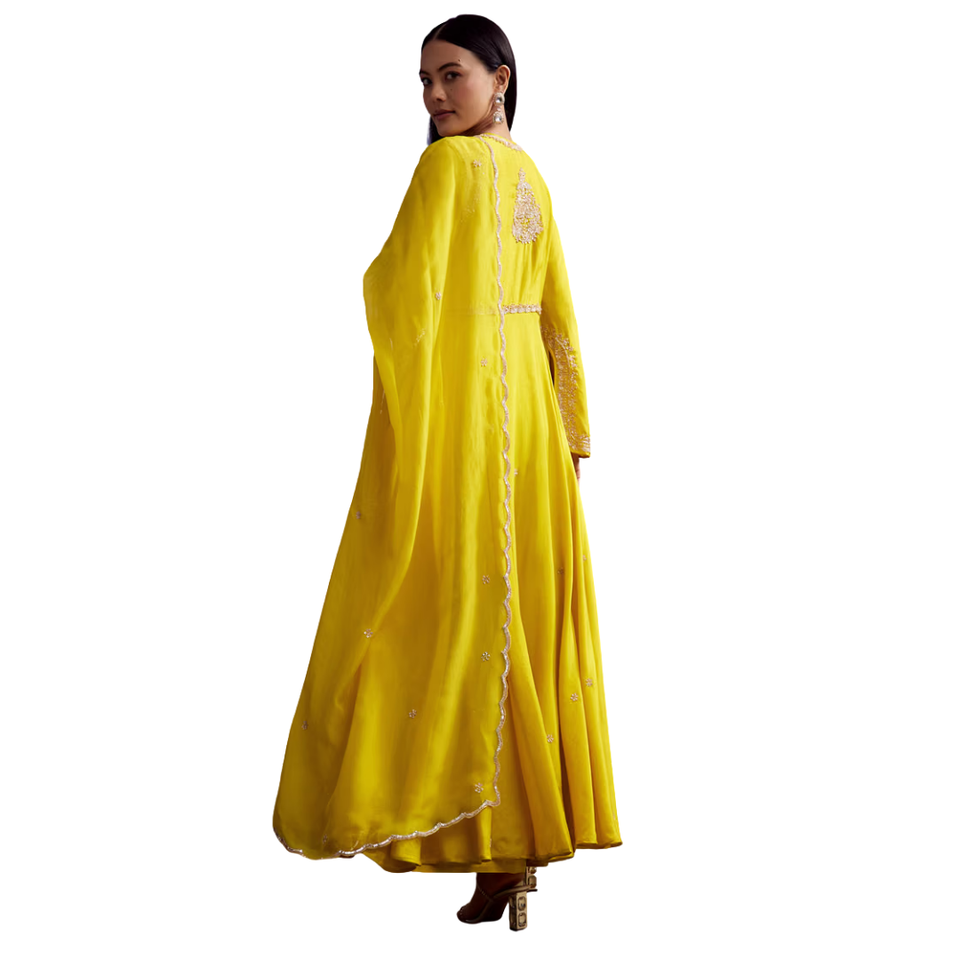 Yellow Russian Silk Palazzo Suit With Cut Dana & Sequins Work Wholesale Women Ethnic Apparel OEM Clothing Factory Supplier Suit