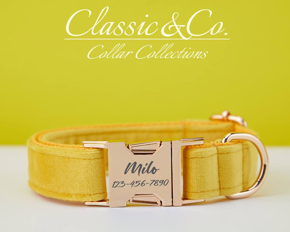 Yellow Veet Personalize Dog Collar Leash Set Flower Bow Tie Male Female Pet Gold Engraved Name Tag Wedding Puppy Gift