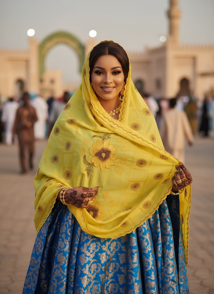Yellow Wholesale Durable African Floral Chiffon Scarf Muslim Ethnic Shawls Breathable Big Hijab Rhinestone Embroidery Summer
