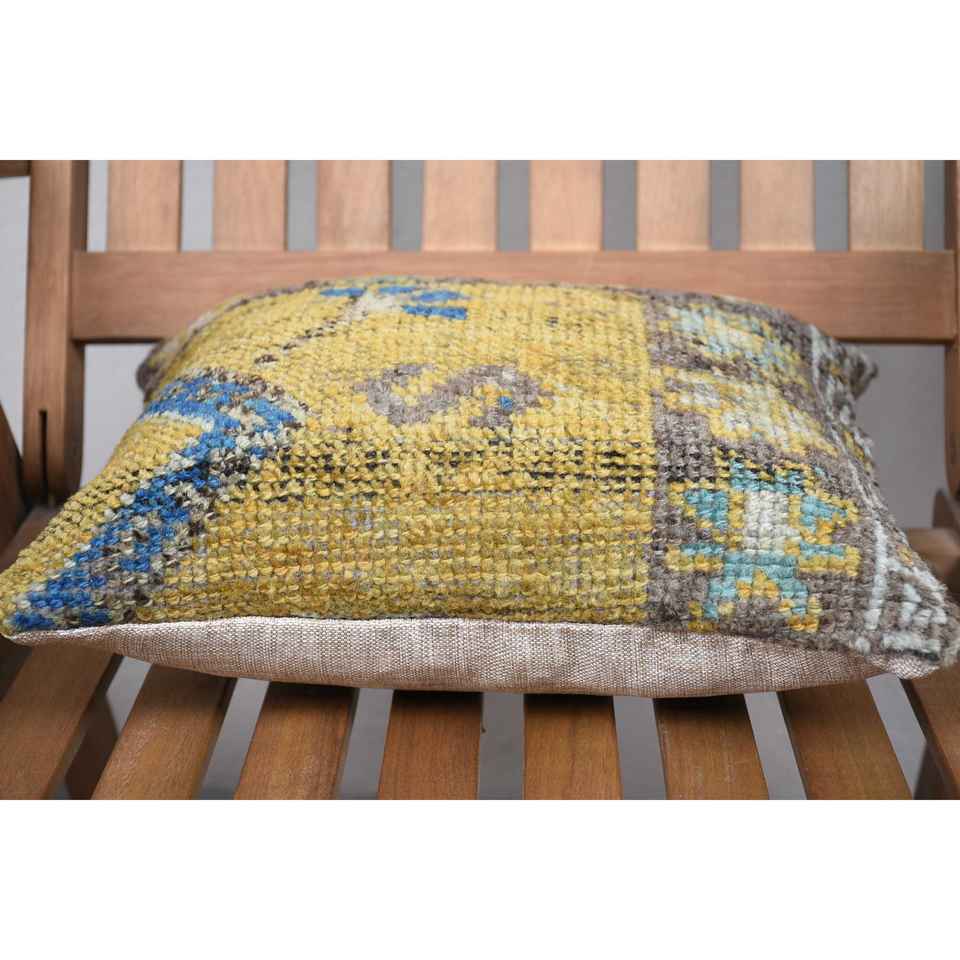 Yellow Wool Kantha Patchwork Pillow 14x14 Inch Rustic Vintage Throw Pillow Hand Woven Technique