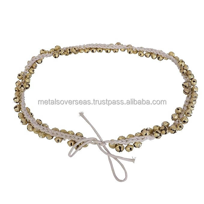 Yellow brass ghungroo tied with cotton thread or rope for Kathak shiny durable bells for dancers available at wholesale prices