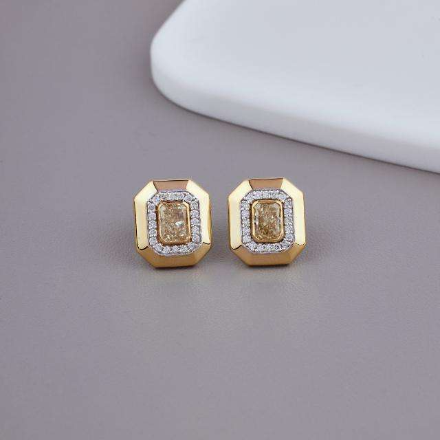Wholesale Radiant Cut Yellow Lab Grown Diamond Halo Stud Earrings in 18K Yellow / White / Rose Gold