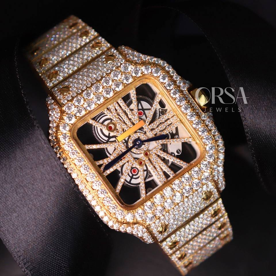 Yellow gold-tone Skeleton Watch Handset VVS Moissanite Diamond Wristwatch Direct factory supply Luxury watches for Men Women