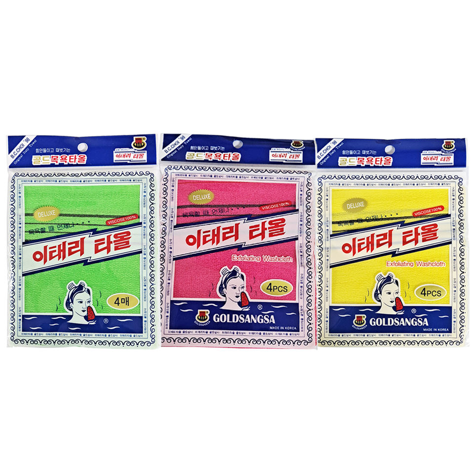 Yellow4pcs KOREA Exfoliating Bath Washcloth towel