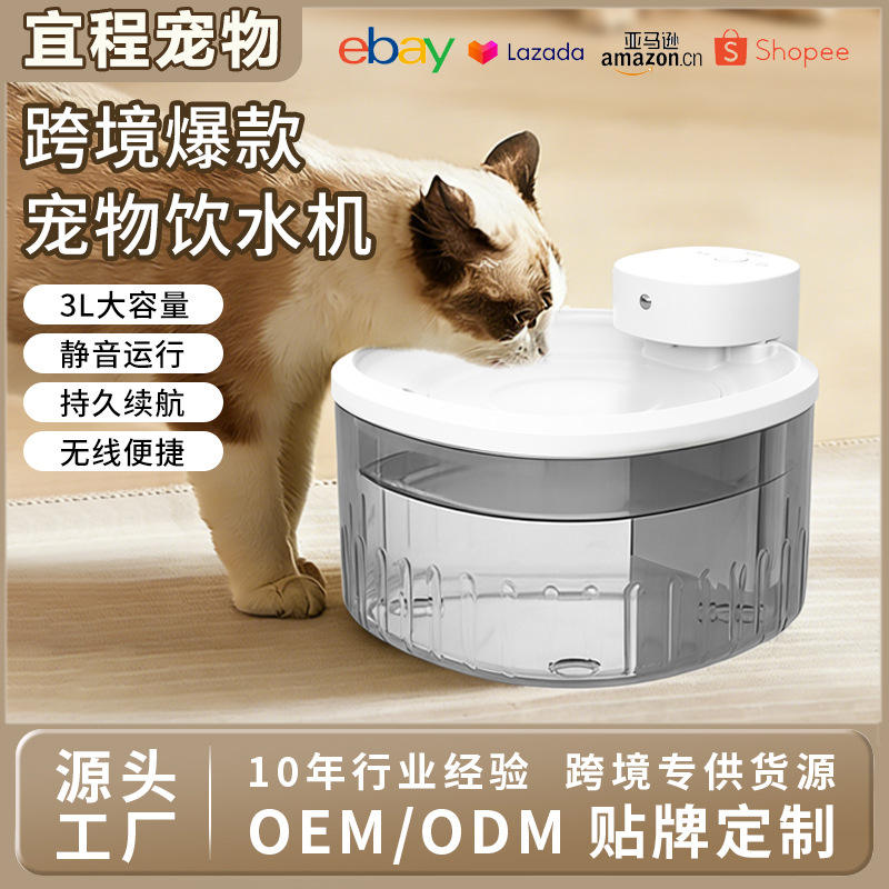 Yicheng Pet Water Fountain 3L Rechargeable Quiet Operation For Cats Gray And White Rounded Design