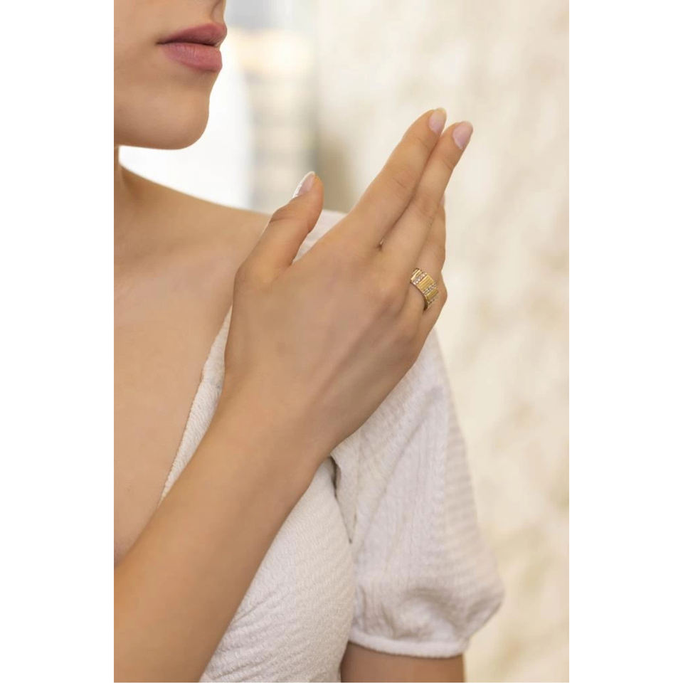 Gold 14 Carat Fancy Ring (3508)-Shiny Alloy Cluster Inlay Trendy Geometric Shape 18K Gold Plated Jewelry