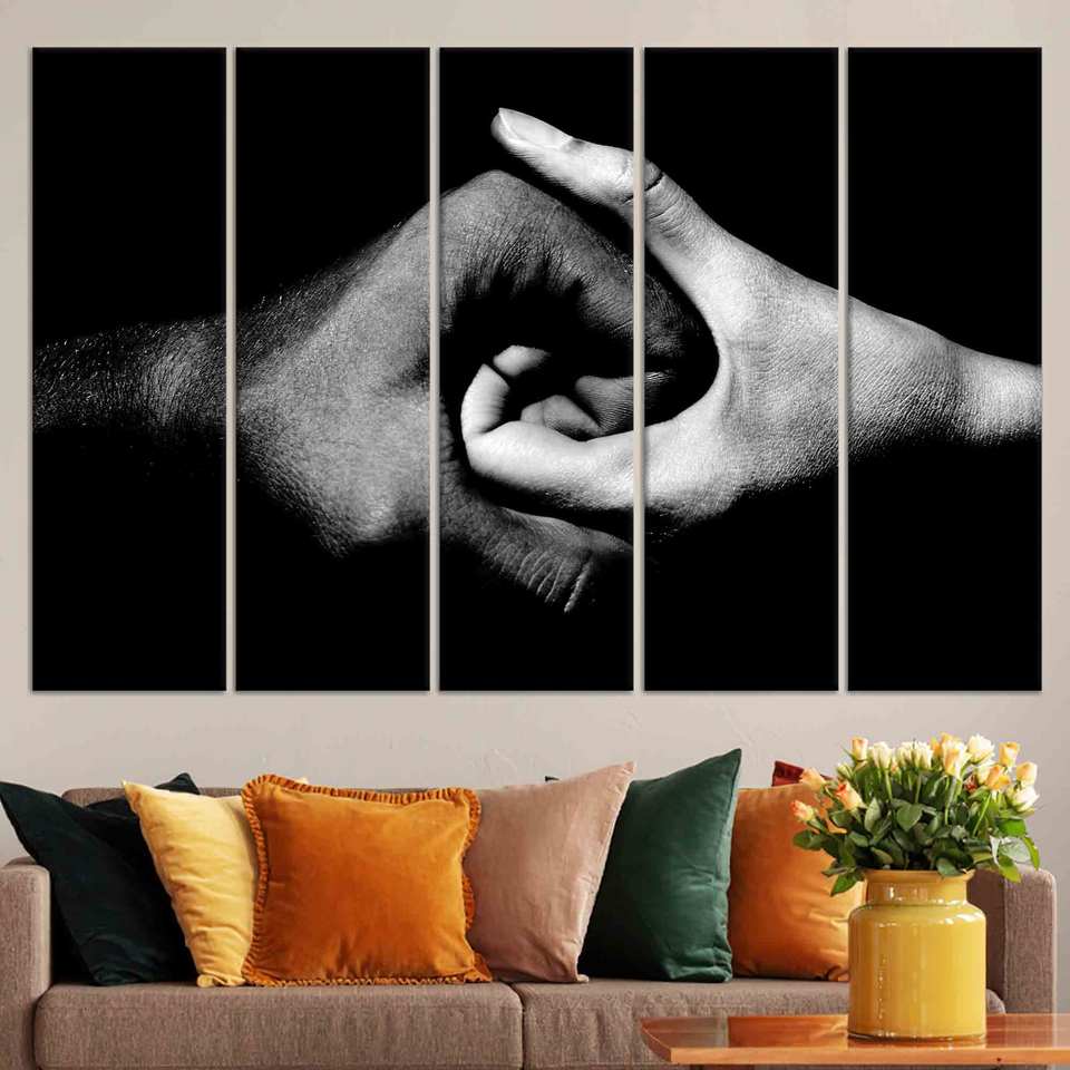 Yin Yang Hands Canvas Art: Black and White Printed Design,SET OF 5 CANVAS
