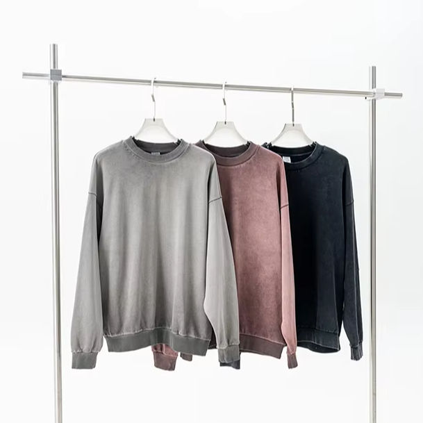Yingling Vintage Acid Wash Men Sweatshirt Hoodie Custom Heavy Weight 380G Round Collar 100% Cotton Custom Logo Sweatshirt