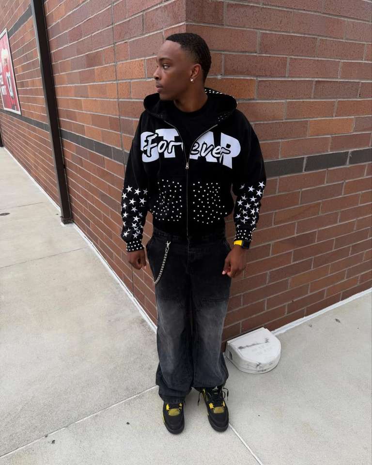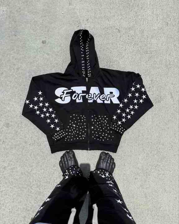 Yingling Zip Rhinestone Print Autumn Hoodie 2 Piece Set Unisex Stacked Pants Sweatsuit Custom Windbreaker Acid Wash Flared Tech