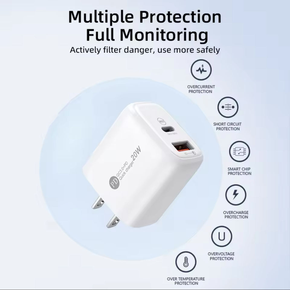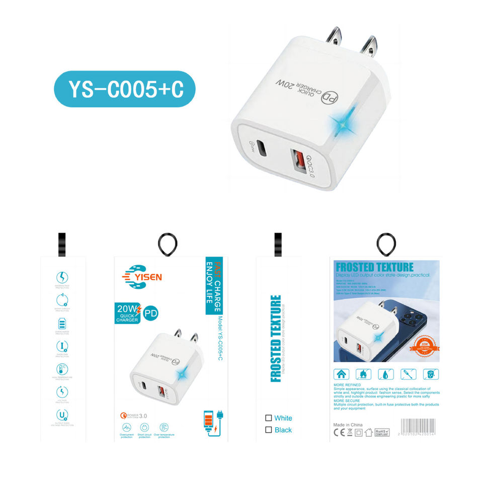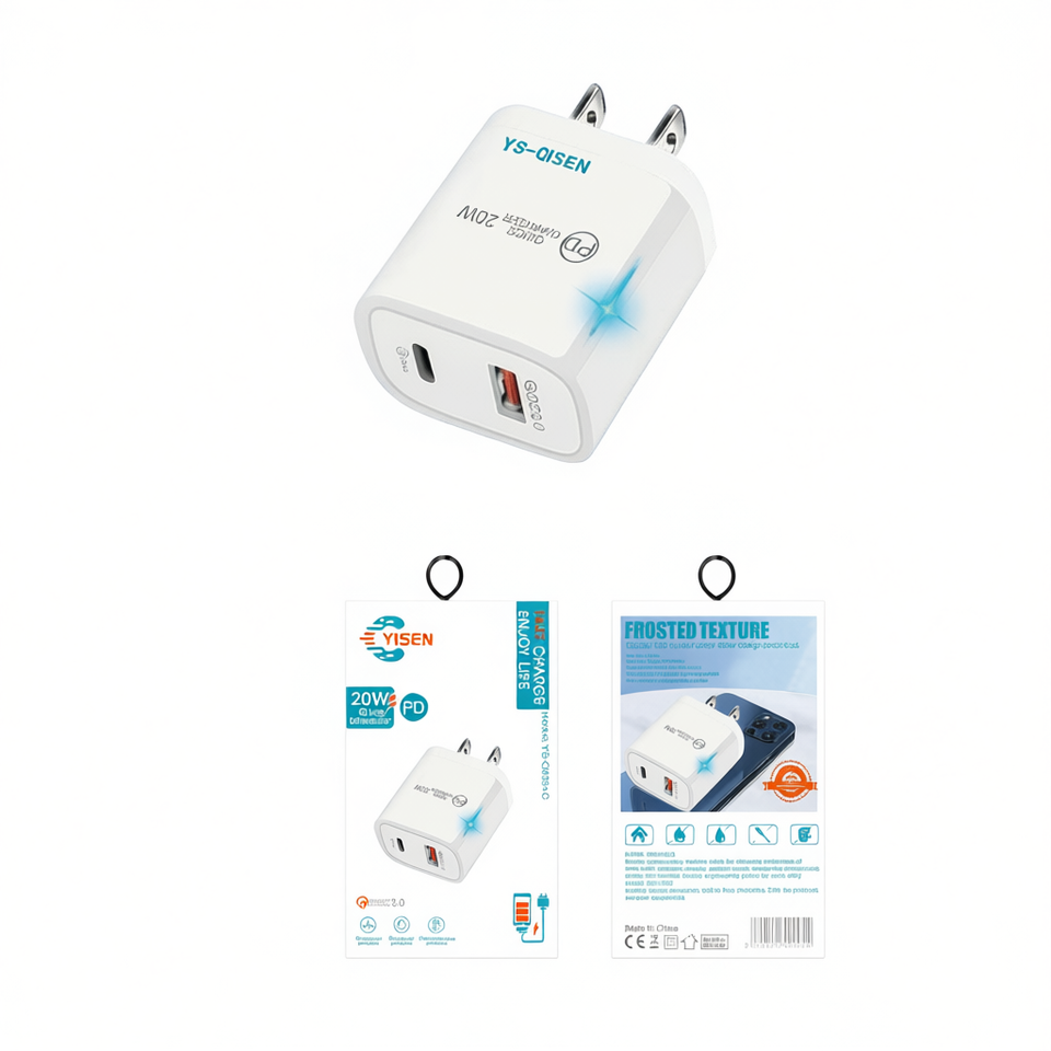 Yisen 20W Fast Charger Dual Port QC3.0 PD USB Type C Wall Adapter For Phone Tablet Laptop