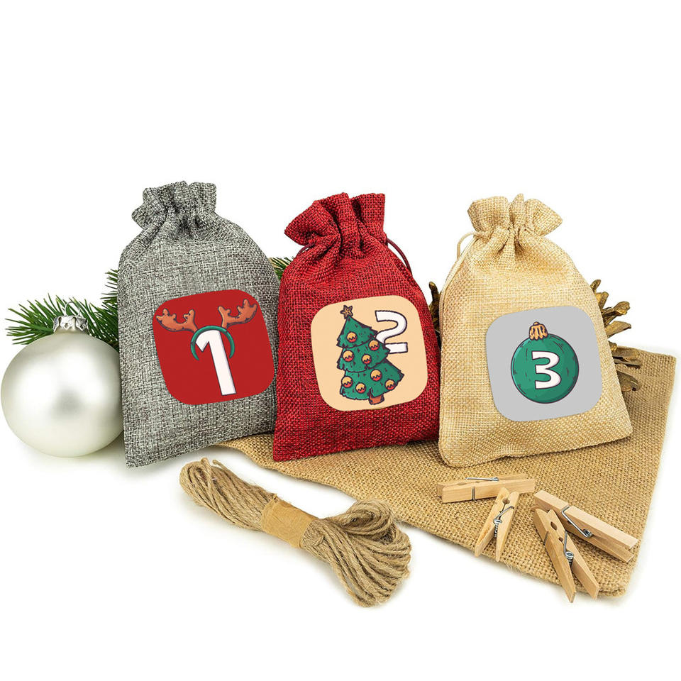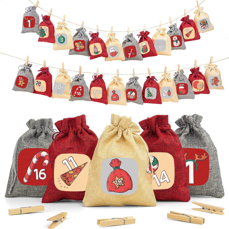 Yiwu 2025 New Christmas Arrival Festival Calendar Bag Children's Party Gift Bag Countdown Hanging Bag Drawstring Bundle Pocket