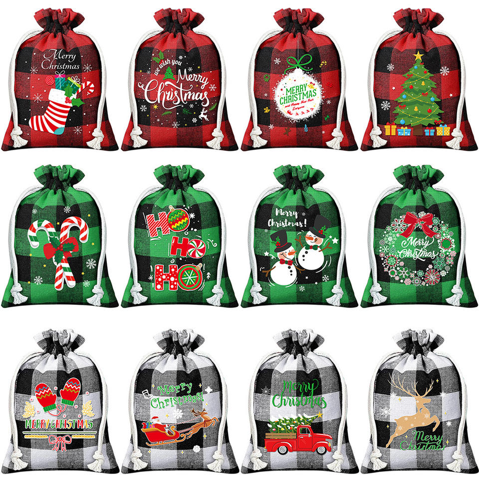 Yiwu 2025 New Christmas Cotton and Hemp Bun Pocket Coarse Hemp Gift Bag Christmas Children's Snack Bag Drawstring Gift Bag