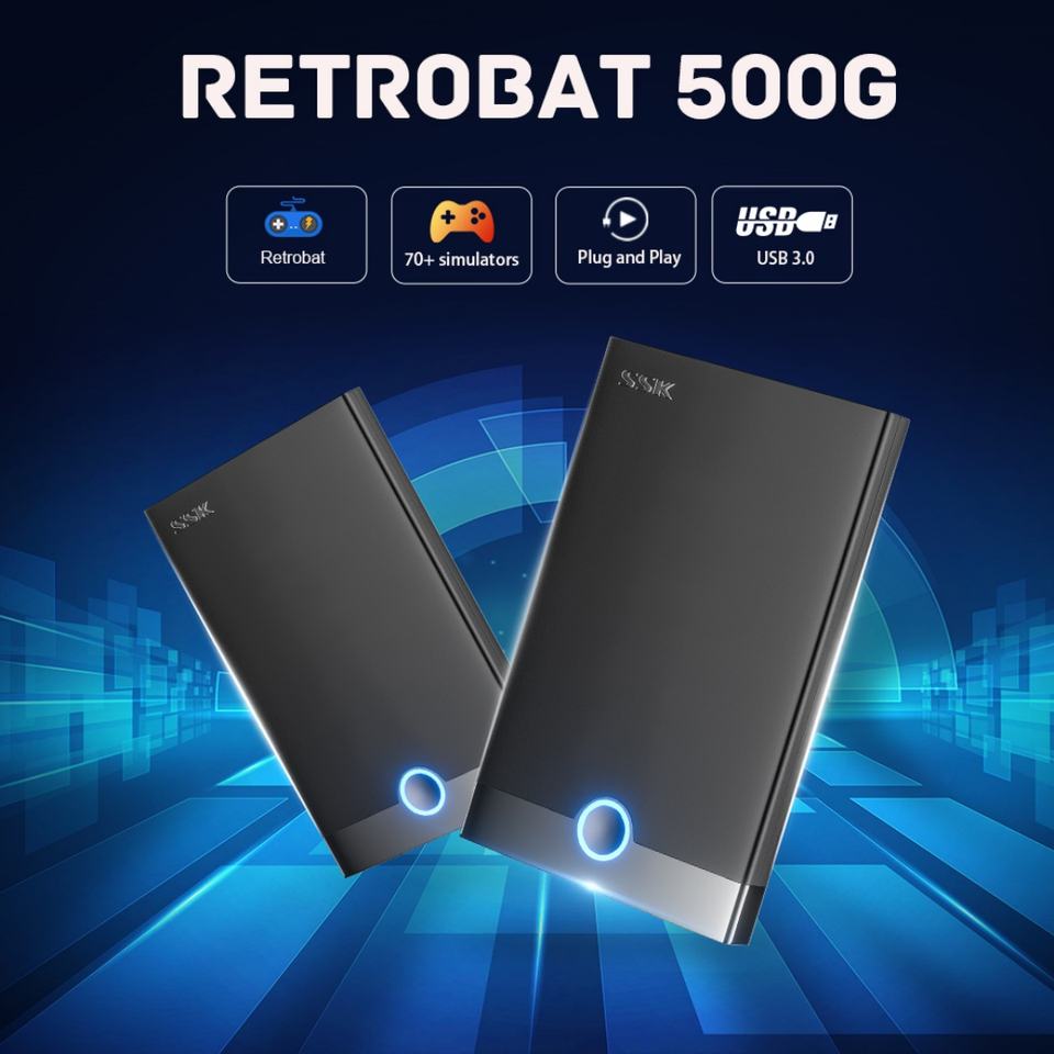Yo SHE090 500G HDD RETROBAT HDD Portable External Hard Drive Disk 60000 Retro Video Games for PSP/PS2 Game Card for PC Windows