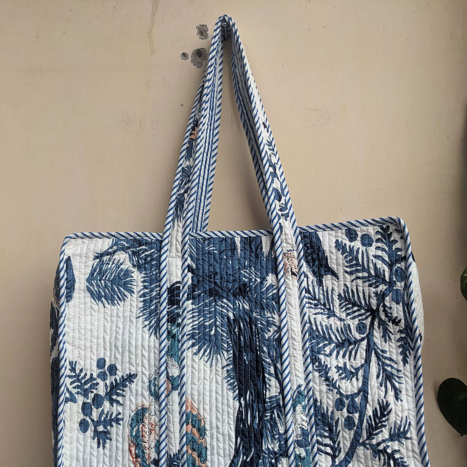 Yoga Shopping Beach Artist Boho Weekend Bag Quilted Tote Shoulder Patch Bag Cotton Hand Print Floral Ecofriendly Sustainable Bag