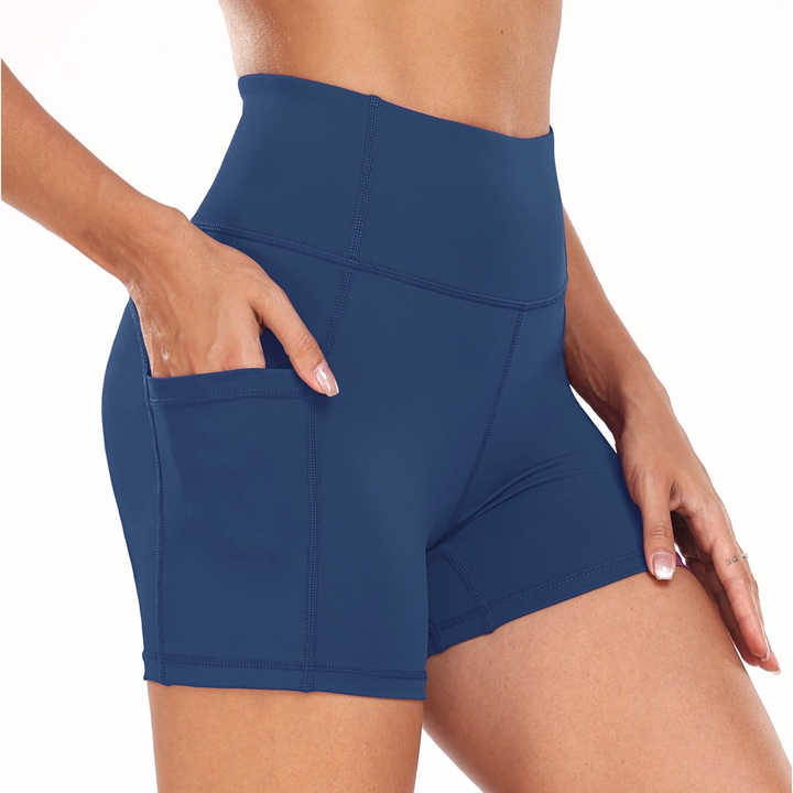Women's High-Waist Yoga Shorts Phone Pocket Sexy Back Compression Scrunch Butt Seamless Workout Shorts Belt Fitness Sports
