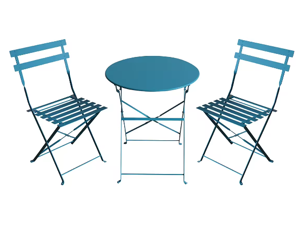 Yoho Outdoor Foldable Bistro Set 3-Piece Steel Frame Patio Furniture Coffee Table & Bench for Pool Bar or Sun Lounging