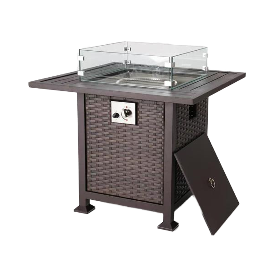 Yoho Outdoor Wholesale Outdoor Gas Fire Table Rattan Pattern Gas Fire Pit with Glass Windy Guard for Patio, Garden Use