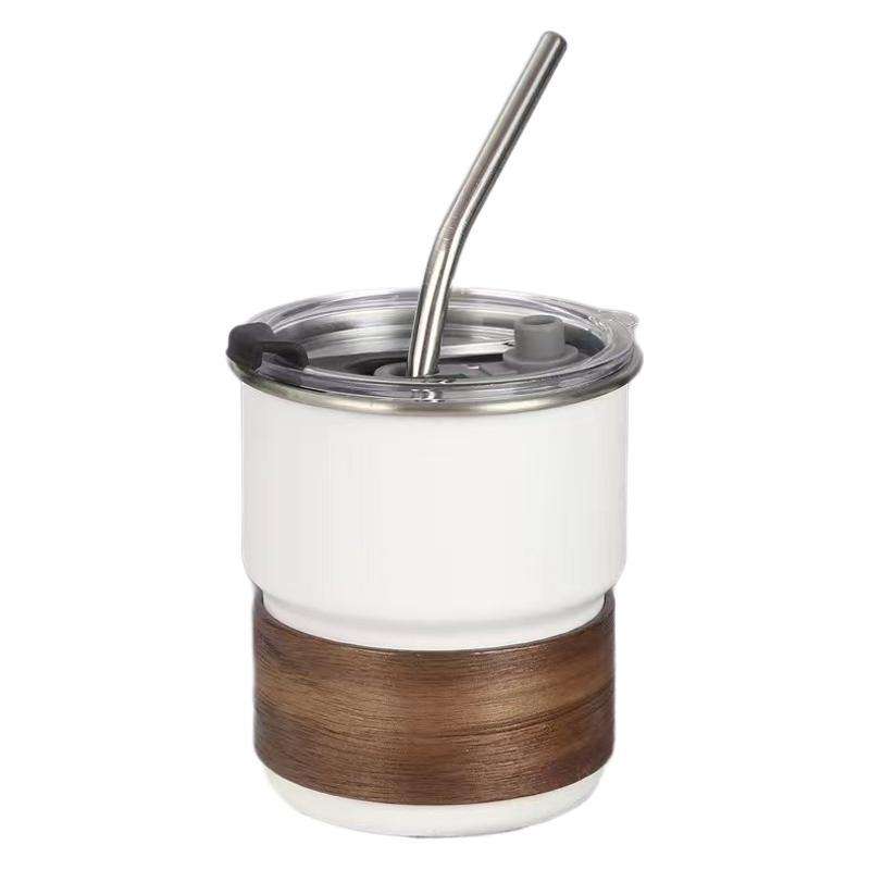 Yongkang Stainless Steel Travel Mug 304 With Straw Portable Outdoor Camping Picnic Mug Lightweight Blue With Wood Grip