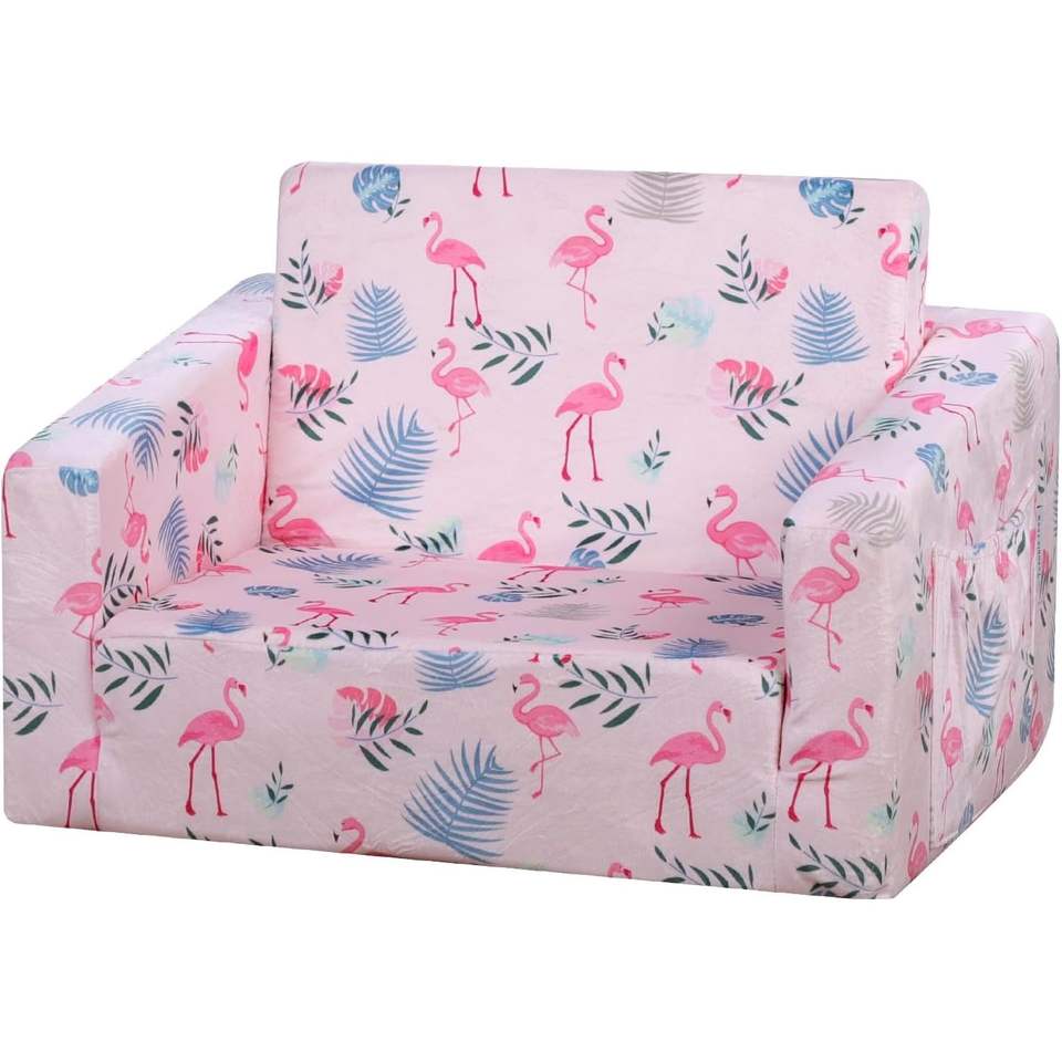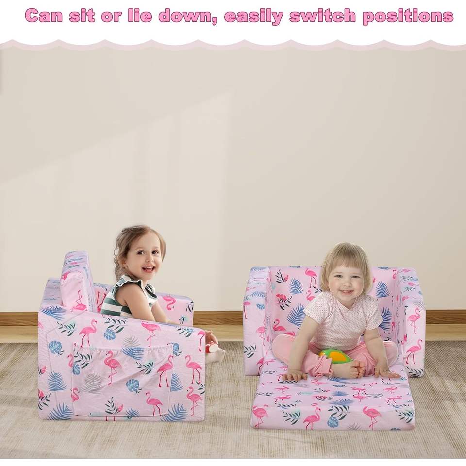 Yoonnie 2-in-1 Convertible Fabric Kid's Sofa Chair Velvet Dining Couch with Side Pocket for Baby Use
