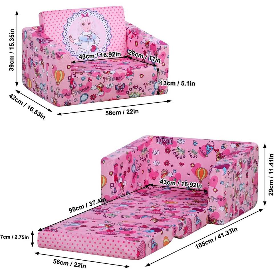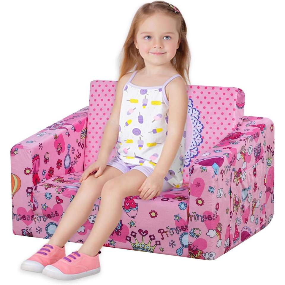 Yoonnie 2-in-1 Convertible Fabric Kid's Sofa Chair Velvet Dining Couch with Side Pocket for Baby Use