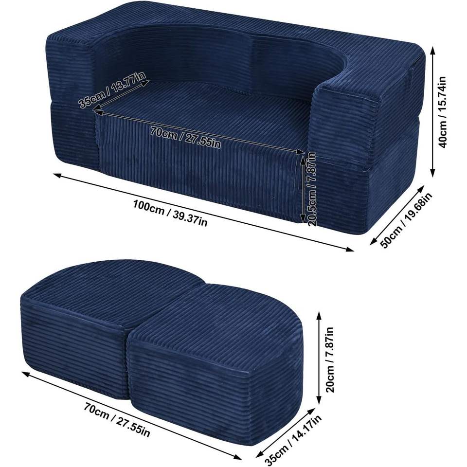 Yoonnie Room Kid Modular 2-Seater Corduroy Play Sofa Multi-Function Foam Blocks with 2 Stools for Toddler Use