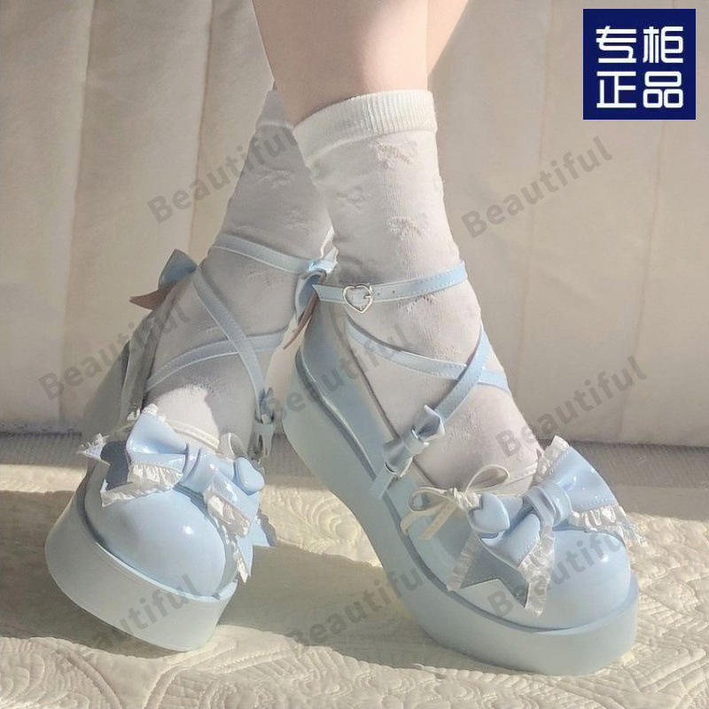 Youjian Shanshui 2.0 Lolita Stilettos Cute Bow Decorated High-Heeled Waterproof Platform Shoes 8cm Original Japanese Sweet