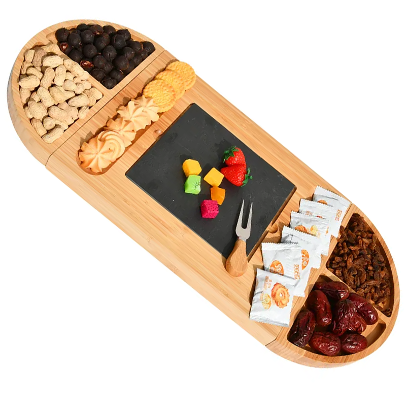 Name:Bamboo Wood Black Slate Cheese Board with Separate Plate