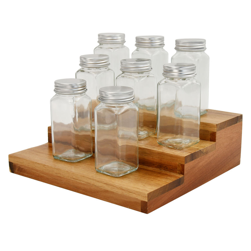 Youlike Hot Sell 3-Tier Expandable Bamboo Spice Rack Step Shape Organizer for Kitchen Storage on Counter or Cabinet