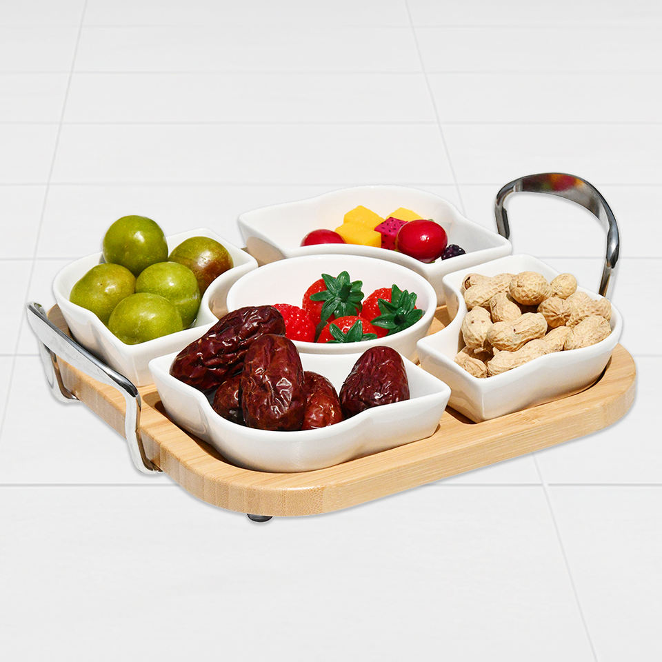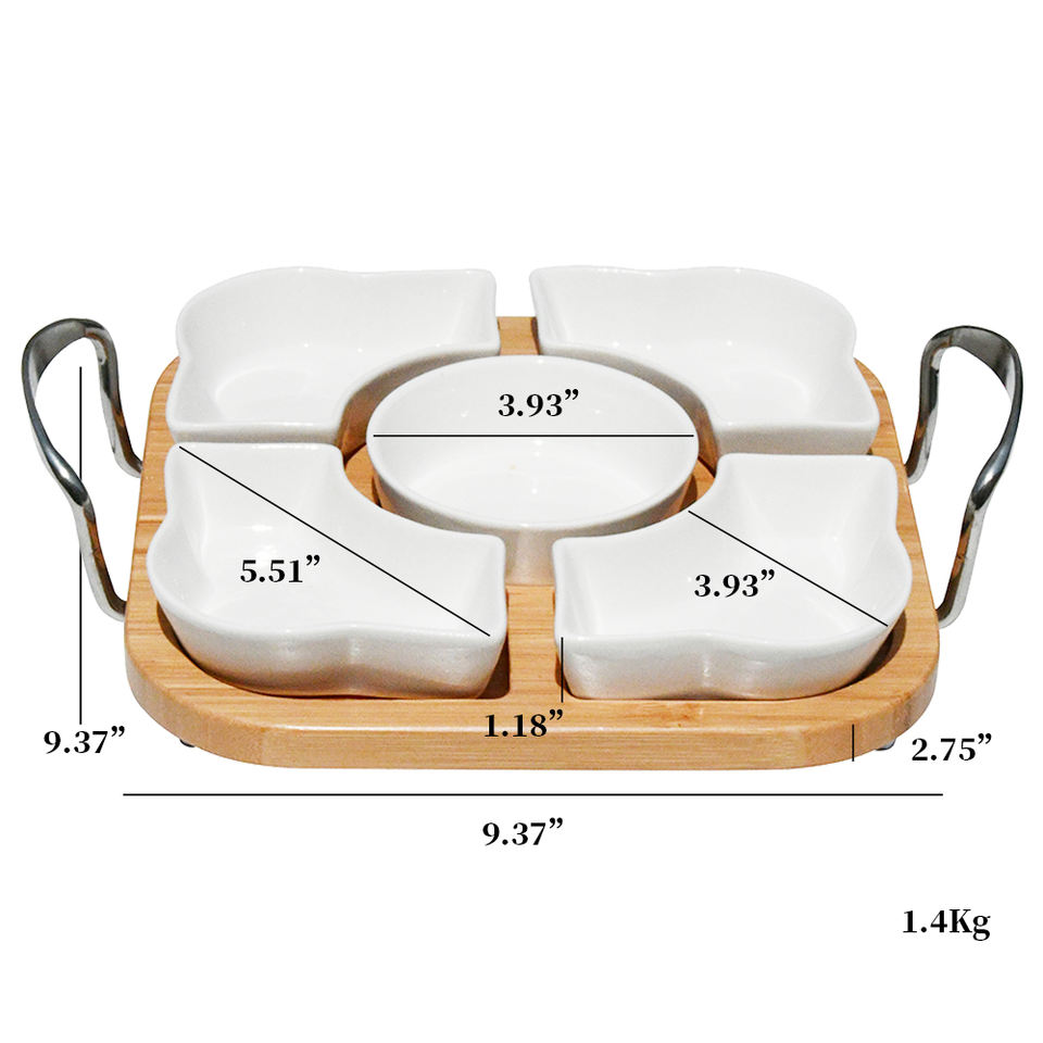 Product name:Bamboo Serving Tray With Bowls And Mental Handle