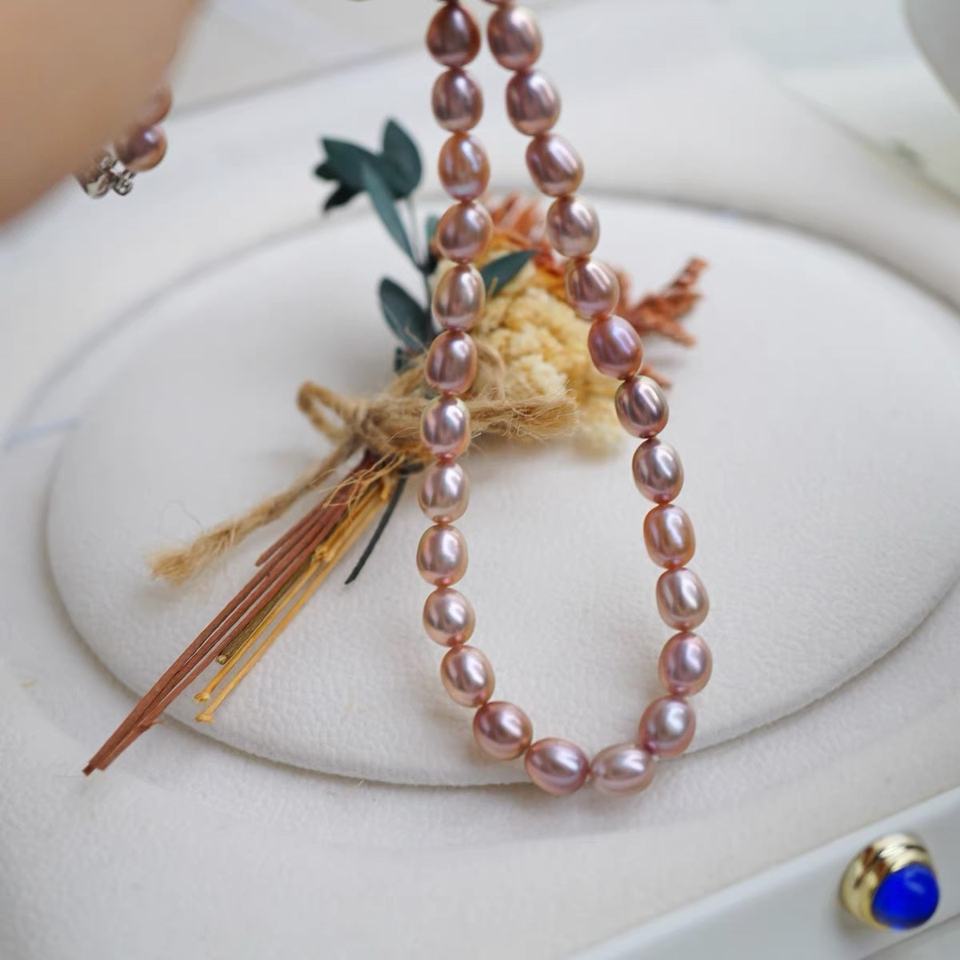 Young Women's Fashion Neck Collarbone Chain Natural Millet Beads & Real Pearls Long Necklace with Pink Personality