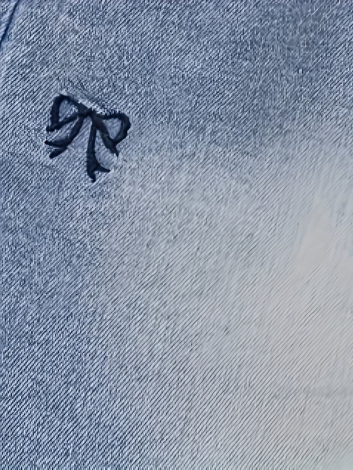 Youth Casual Worsted Fabric Shorts with Bow Embroidery-Light Blue Regular Fit High Waist Spring Wear Girls Color Fade Proof