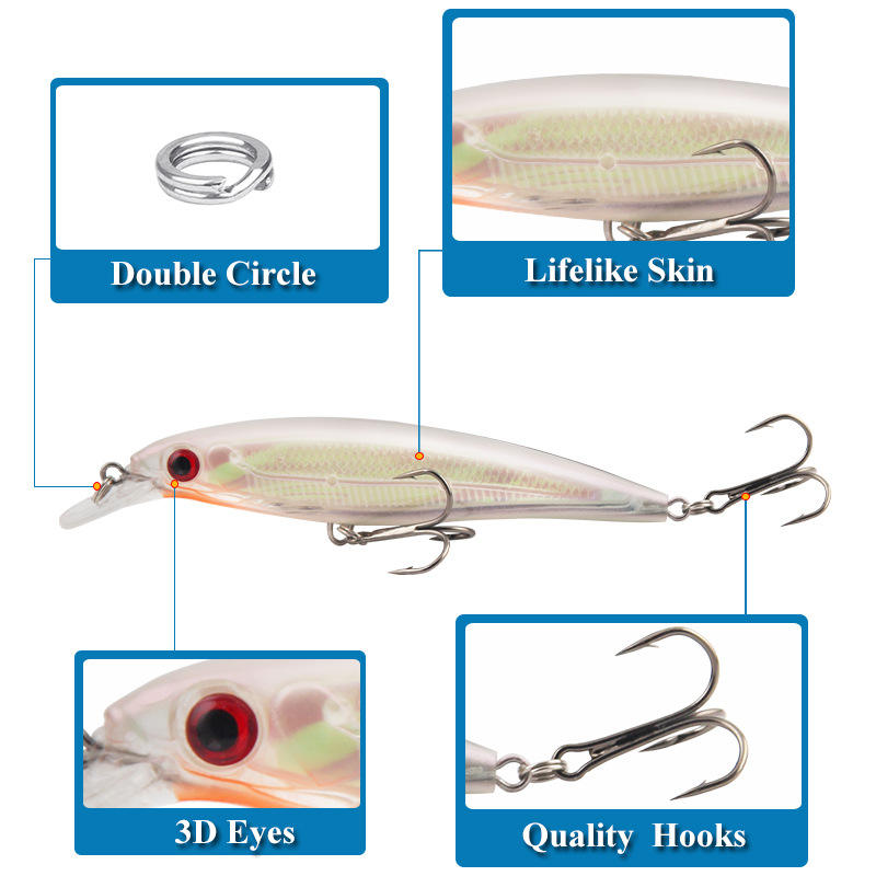 Ytqhxy Minnow Lure 11.2cm 13.2g Midwater Bait Bass Fishing Tackle With Rattle Hard Lure Set