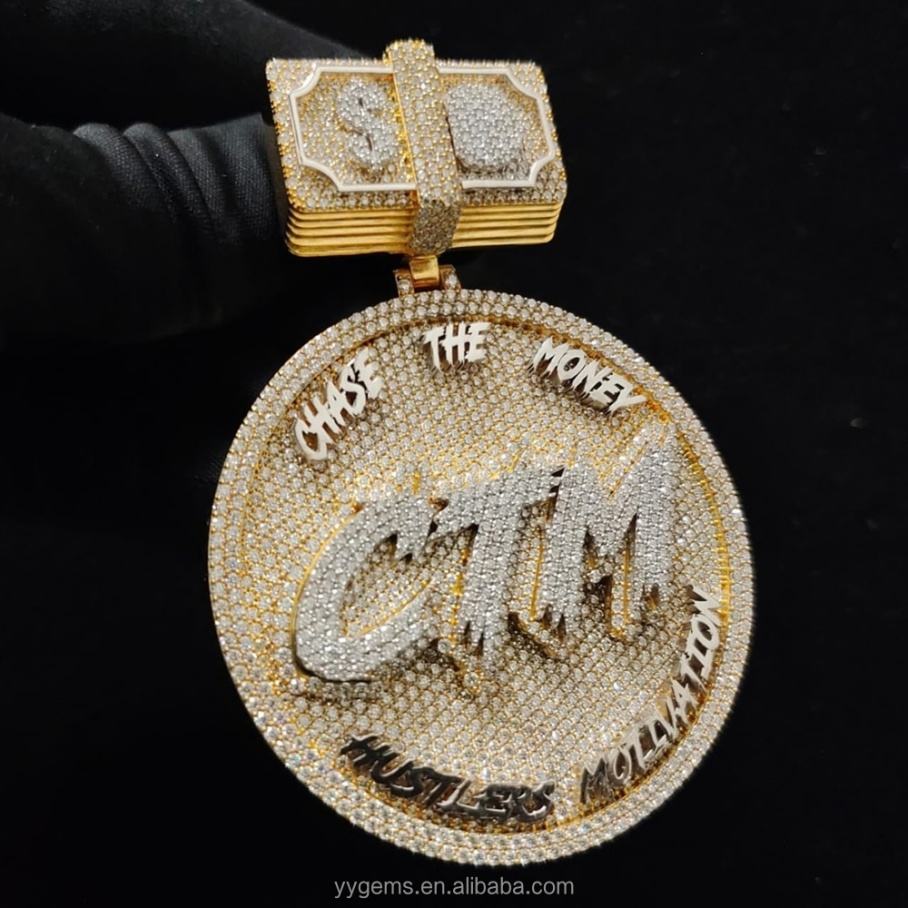 Name:S925 silver custom baguette moissanite fashion jewelry pendant charms