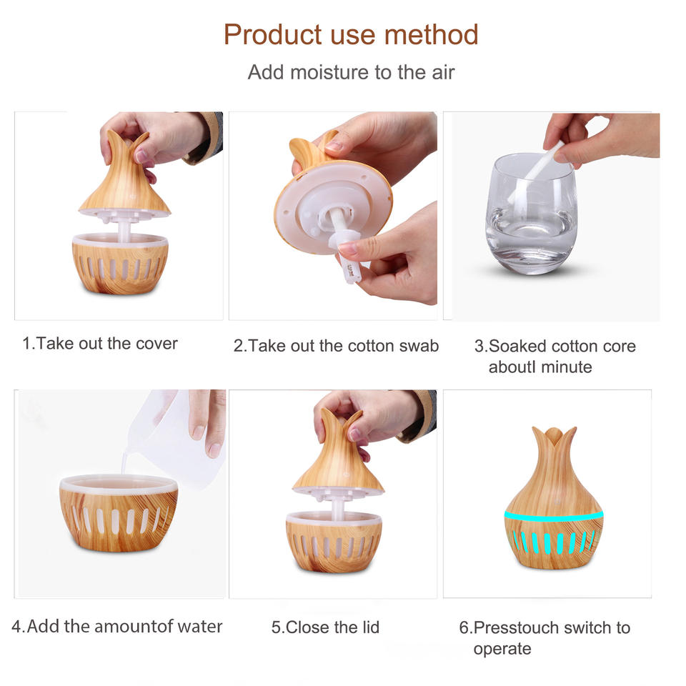 Yx-288E Mini Desktop Aroma Diffuser 5V USB Humidifier Light Wood Grain Home Use 10-20 Sqm 2-8 Hour Timer