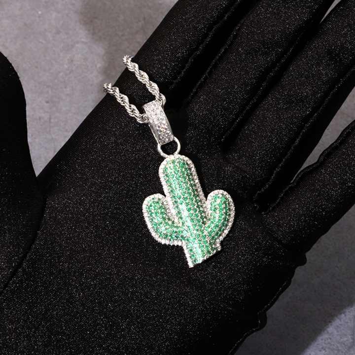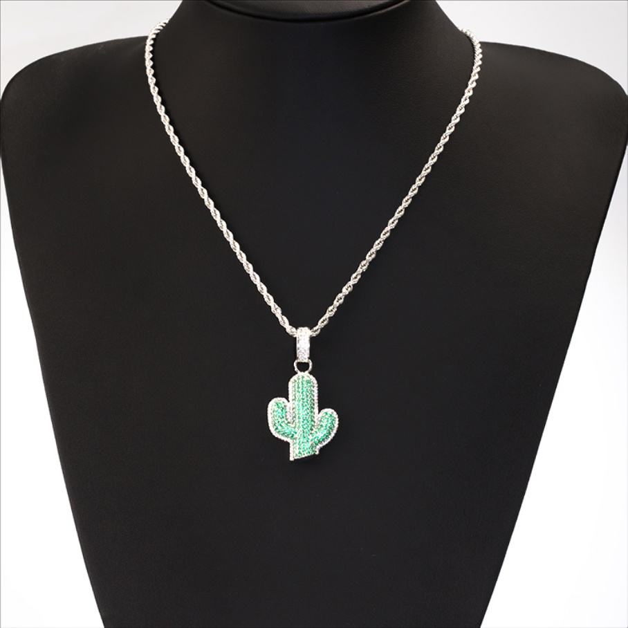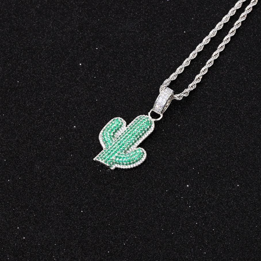 Yy Elegant Female 925 Silver VVS Moissanite Diamond Cactus Designed Pendant Set Drop Shipping Hip Hop Style Jewelry