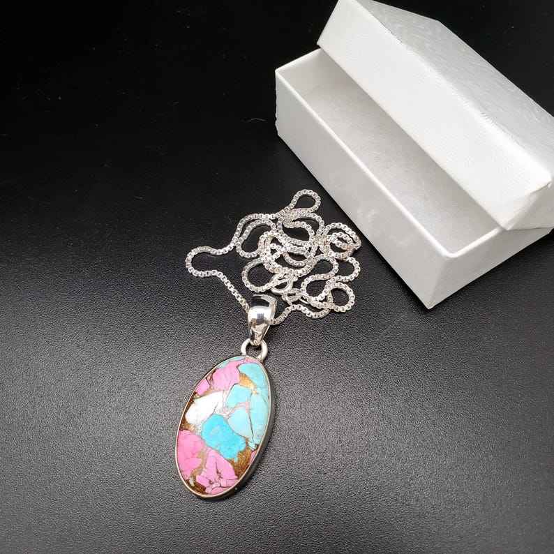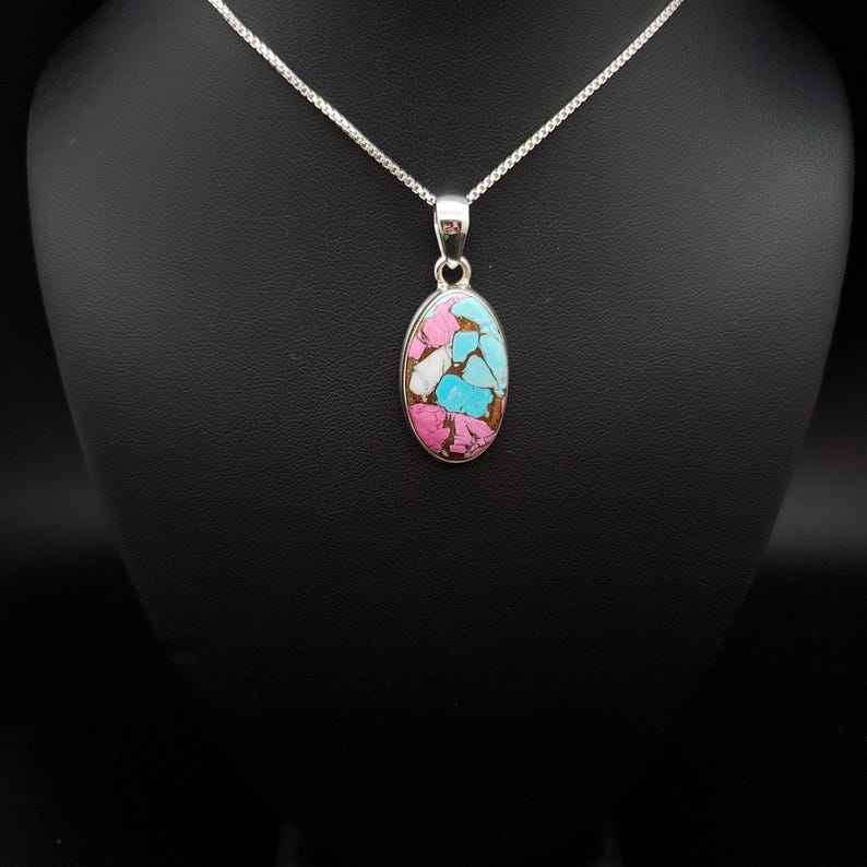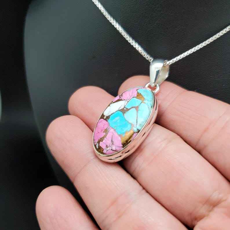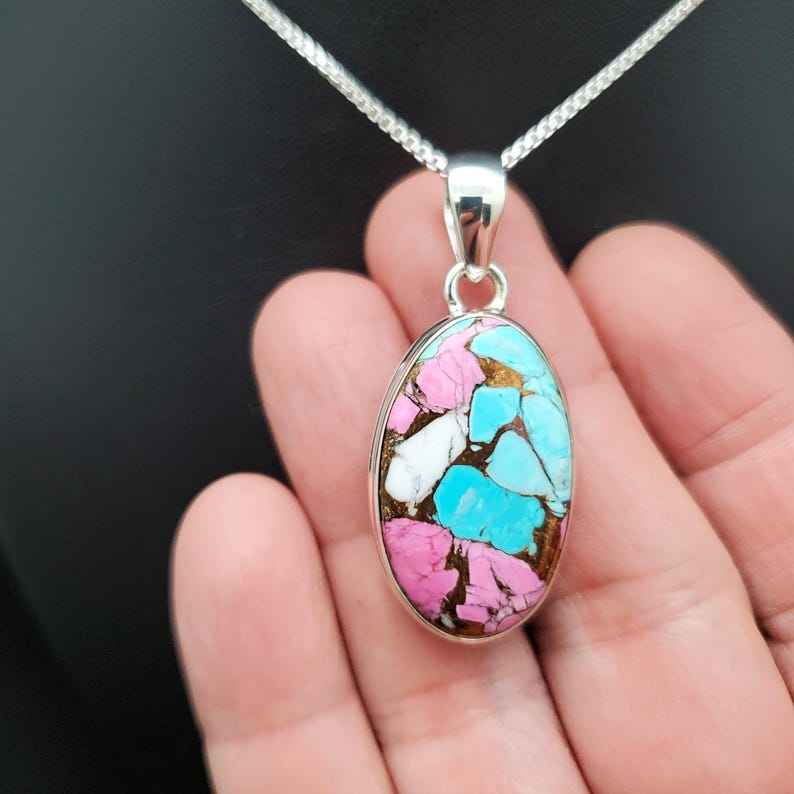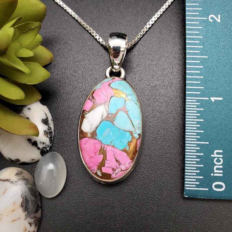 Z-056 | Unique Sterling Silver Pink Cotton Candy Turquoise Pendant Necklace | Mohave Copper Turquoise | Pink Blue White